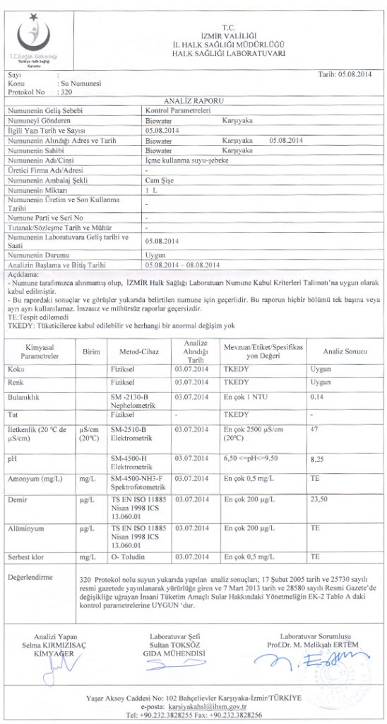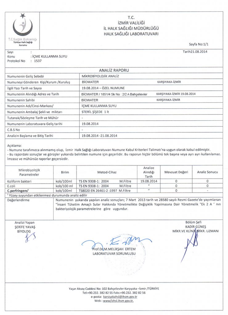 BIOWATER’la sizin ve ailenizin sağlığı güvende. Üretilen her damla suyu güven içerisinde tüketirsiniz.
